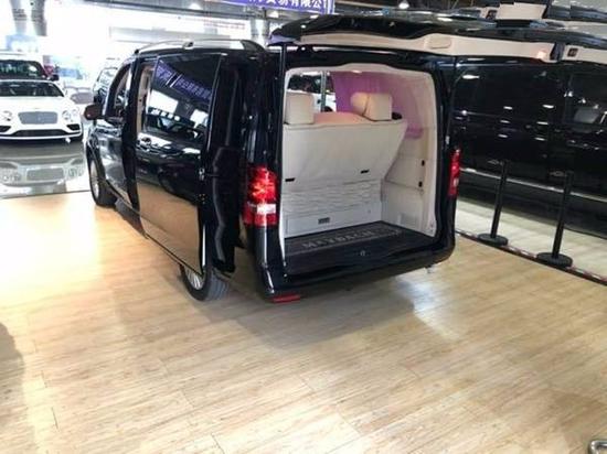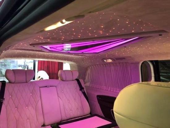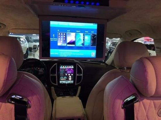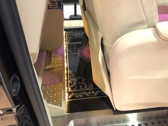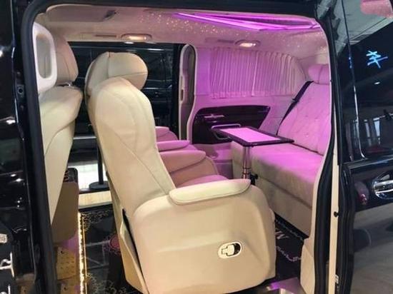 后加装:钻石顶彩虹色个性调节及鹿皮绒包覆,满天星星空车顶,JBL高保真音响贵宾区强化隔音隔热处理,触控屏调光控制系统,车顶行李架,中文导航,中央竖屏式大屏导航,环车影像,隐藏式行车记录仪,LED鹰眼氙气大灯,LED日间行车灯,前雾灯,流水型转向灯,高级打孔米色真皮座椅,前排中央扶手带冰箱,仪表台真皮包覆,内门板真皮包覆,真皮桃木方向盘,高级桃木内饰,主副驾驶电动座椅带加热,第二排通风、加热、按摩可360度旋转Maybach航空座椅带腿拖,第三排电动座椅180度放倒式沙发床,第三排杯架,第三排座椅后抽屉,豪华进口整车窗帘,后掀式电尾门,可拆卸式钢琴漆会议桌(桌腿高度可调节),迈巴赫高光大理石地板,第二排高清宽屏吸顶DVD,主副驾驶后背小桌板,Maybach不锈钢门槛,迎宾门槛灯,车内可调颜色氛围灯等