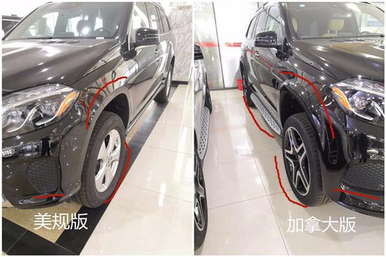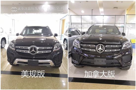由图片大家可以看到,进口的奔驰GLS450两个版本是有区别的,主要在外观方面。加拿大版标配了AMG运动套件,(AMG套件:前运动大包围、运动轮眉、运动轮毂、运动后包围、镀铬尾喉),显得更加扎实漂亮些,但相对的价格就比美规版高了些。