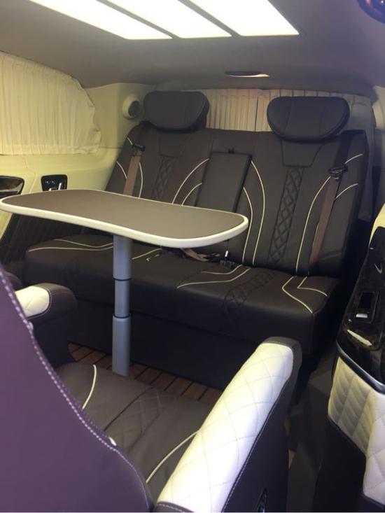 17款纯进口威霆加长版裸车仅售45万高级定制版原装进口奔驰威霆,车长5.37米,高1.89米,宽1.92米,全车金属漆,双侧电动门,全车原装版大包围,铝合金行李架,双LED大灯,LED 尾灯,LED雾灯及LED日行灯,外部后视镜加热,电动调节,定速巡航,胎压监测,舒适悬挂,主动泊车,倒影,多功能方向盘,雨量感应雨刷,内部镀铬套件,遮阳板带化妆镜,第三排车窗电动开启,18寸AMG版本轮毂,全车内饰紫/米双色Napa真皮搭配高档皮革,原厂中央扶手箱及原厂中排后座小桌板,12.1寸超大屏手机互联智能音响导航系统,全车高级桃木内饰,5.5寸智能控制触摸屏,控制全车内部灯光系统,后座11.6寸1080P高清智能娱乐系统,支持WI-FI上网及热点共享,支持高清电影播放,支持无线红外耳机,模拟日光照明灯及脉冲变色星光顶,梦幻气氛灯,8向调节总统级商务座椅,带加热、通风、按摩,可360度旋转,舒适推托配合舒适脚踏,4向电动调节触摸屏控制后排3人座,可放平180度做为家庭出行商旅舒适休息床铺,带加热、通风,4人折叠收放商务小桌版,进口柚木拼花地板,全车进口私密窗帘(电动可选)