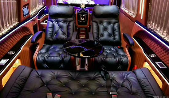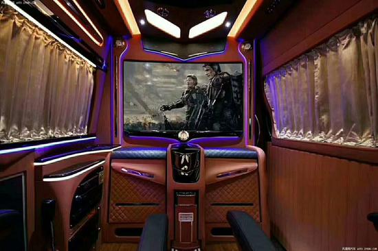 本款奔驰斯宾特爱马仕版房车的后排可完全放平,形成一张2米左右的沙发床,可供乘客休息,并且延续了奔驰内饰所特有精致的做工与合理的布局,整车选用桃木装饰,大部分采用软性材质包覆。