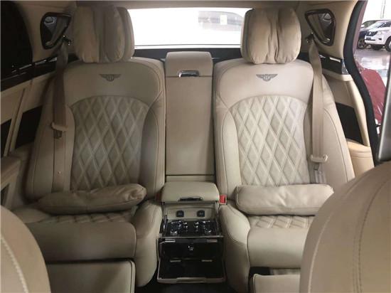 2018款宾利慕尚加长版内部充分利用额外的后排空间,宾利研发了航空式电子腿托,组装在两个后排座椅的基座上。腿托可以向外延伸和旋转,为后排乘客提供直立、放松、倾斜等不同座椅位置的乘坐体验。在慕尚长轴距版的两个后排座椅之间,有一个控制台,还提供各种实用功能,例如USB接口、笔架、杯托和玻璃盖储存区。