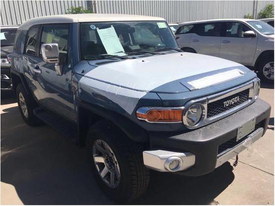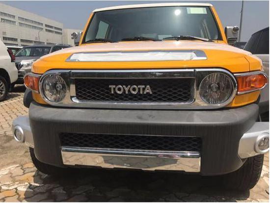 18款FJ酷路泽顶配极限运动版,蓝色,黄色。(比17款多副驾驶扶手,车身彩条,前机盖镀铬,中网四周镀铬,前杠镀铬)配置:Xtreme标志,双油箱,8气囊,蠕行模式,JBL音响, 17轮,前雾灯,银色把手,车身外观镀铬套件,后雷达,镀铬尾喉,黑色挡泥板,脚踏,双油箱,防炫目内后视镜带倒影,胎压监测,指南针,水平仪,数码时钟,双色多功能方向盘,蓝牙电话,6碟CD,收音机,定速巡航,上坡辅助,防侧滑,遥控钥匙,手动空调,织布座椅,脚垫。