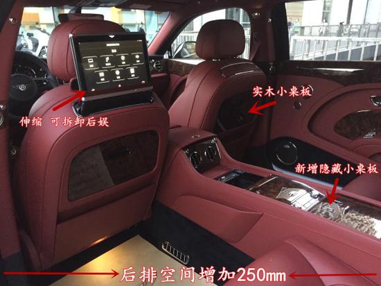 2018款宾利慕尚加长版作为老板座驾,前排虽不是亮点,但其做工也是无可挑剔,纯手工内饰需要花费工人近400多个小时打造缝制,搭配大量的金属装饰,完美结合的天衣无缝,座椅带有调节、按摩、通风等功能。