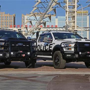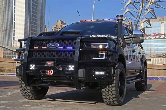 福特F150白金版改装战警版整个前杠的做工以及和整车的贴合度非常高,设计理念应该是直接照搬了老式的福特维多利亚皇冠警车,不过,出于对行人安全的考虑,现役美版警车已经把前杠上的侧翼去掉了,前杠下方是WARNTABOR系列的12000磅绞盘,提升了一定实用能力,户外越野绞盘的重要性不必多说。性能稳定。