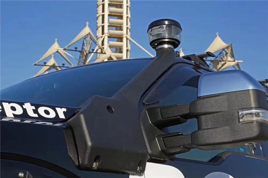 福特F150白金版改装战警版轮胎、轮圈采用WHEELS18寸轮毂+路航35/12.5R18的轮胎,在底盘2英寸举升的前提下,35的轮胎应该已经达到极限,尾箱上的擎天柱龙门架主要为了炫酷,向上的排气主要起装饰作用,实用性不大,并侵占了尾箱上方的空间,对于有长途远征需求的车友而言,高盖或平盖的功能性意义更大。