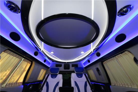 前后舱隔断开的美上版凯迪拉克总统一号,贵宾舱采用大量的的雀眼枫木与真皮装饰包覆,地板采用的是高级游艇木地板,车顶天窗以及LED氛围灯饰,可多样变换,营造多种不一样的氛围。