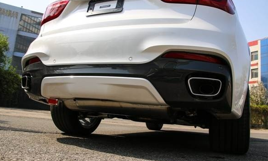 由于有Coupe因素在里面,导致X6的后备箱空间不像其前辈X5那样大,但依然能够达到570L,对于日常使用还是够用的,有需要时还可以拓展成为1450L的大行李箱。值得一提的是X6的后备箱开启角度可以通过i-Drive系统进行五级调节,在空间狭小地区依然可以顺利开启,非常人性化。此次实拍的是X6Xdrive50i,搭载了一台4.4LV8双涡轮增加发动机,最大功率300Kw,最大扭矩600N·m,按照原来的命名方式,应该是44i,由于这台发动机在参数和性能上均与5.0L发动机相当,根据新的命名方式得以称之为50i。与之搭配的是6速手自一体变速器,无论是在动力传递上还是运转平顺性上,都表现的十分出色。这辆车最大的卖点是匹配了宝马的动态驱动力分配系统+智能全轮驱动(DynamicPerformanceControl+Xdrive),在默认状态下驱动力分配比例为前:后4:6,并且动力可以在前后轮之间进行无级切换,保障动力能在对的时间应用到对的位置,而这一切的反应时间不过0.1S。宝马X6的这套系统可以在车辆无牵引力时依然可以对车辆进行控制,进一步提高车辆行驶的安全性。
