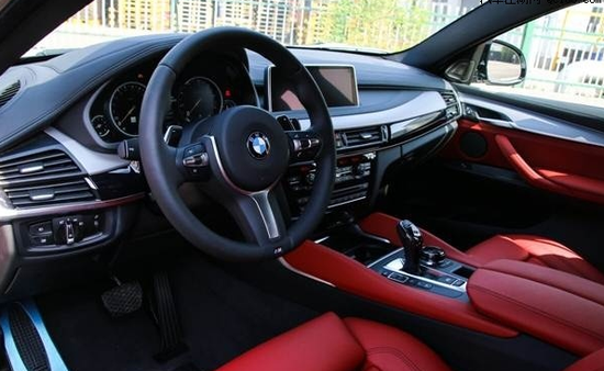 X6配备了6速手自一体变速器且具备运动模式和换挡拨片,并且使用了宝马新式的排挡把设计。宝马的i-Drive系统也配备在X6上,单看图片就知道这用料和做工有多么讲究了。