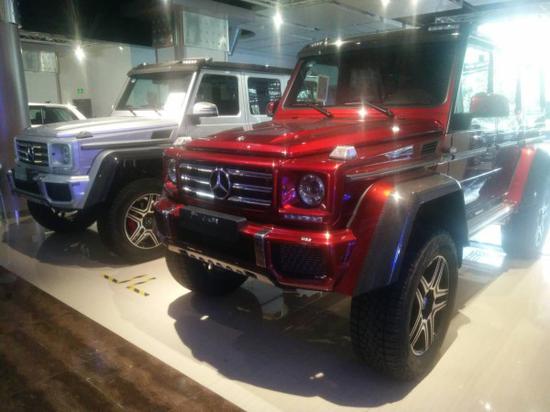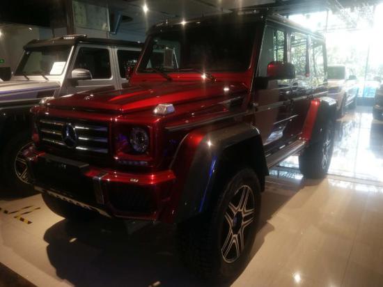 奔驰G5004×4是一部纯粹的全地形越野车,标志性的三肋镀铬格栅,复古的设计已成为一个时代的象征。彰显出十足的越野味道。奔驰G5004×4车头部份特别换上了碳纤维材质的单横栅式水箱护罩,并在两侧进气孔下方则追加了LED昼型灯,展现出更为华丽的车头造型。搭配车身大型轮拱同样碳纤维材质的设定,并刻意透出半截碳纤维材质的迷人纹路,让奔驰G5004×4的外观更显凶悍。