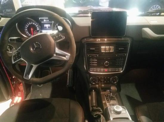 奔驰G500 4*4 高性能方向盘,使用黑色Nappa真皮包裹,手感出色,集成了多个常用的多功能按键,同时具有换挡拨片。座椅具有多向电动调节、座椅记忆、座椅加热等功能。新车提供多种颜色搭配,提供designo黑色钢琴漆饰件,也可以选装designo香槟白色钢琴漆饰件。新车搭载的全新的COMAND NTG 5信息娱乐系统包含了具有特别附加越野功能的导航系统、LINGUATRONIC多媒体语音控制系统等功能。