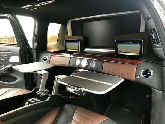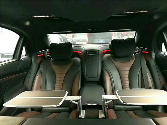 奔驰普尔曼的座椅前面都都类似于航空飞机的私人桌板。