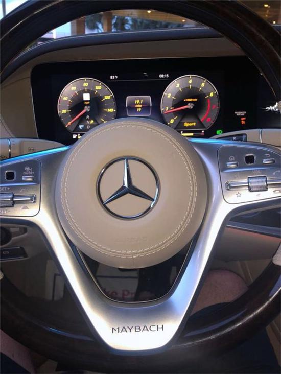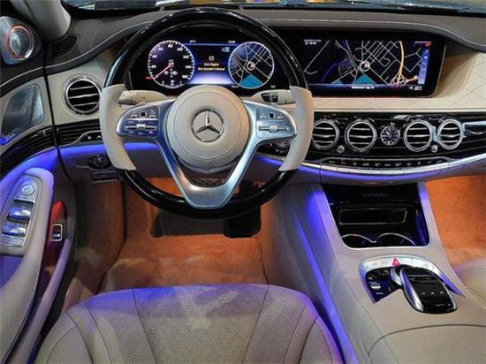 19款奔驰迈巴赫S560进入车厢内处处弥漫着豪华的氛围,中控台上有大面积的真皮包覆,同真皮座椅一样采用了菱形缝线的设计,哑光银饰和实木饰板的加入,使得整个中控区域更富有层次感,只是三幅式的多功能方向盘不如两幅式那么有岁月感,缩小了环身显然更偏向运动。仪表盘和中控屏同普通的 S级 一样采用了合二为一的双12英寸液晶设计,中控屏下方还布置了一块价格不菲的万国表。