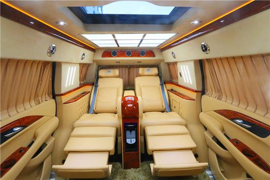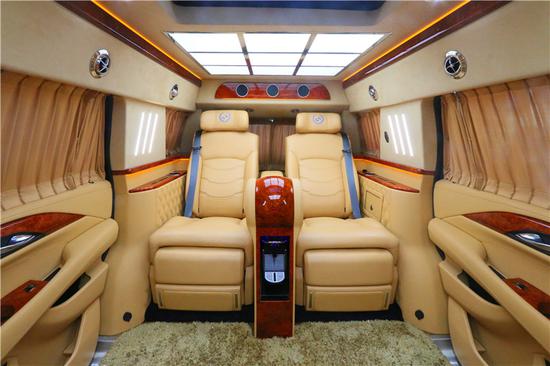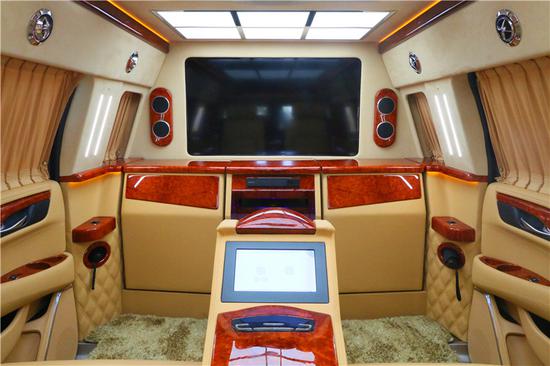 进入车内看一下我们2018款凯迪拉克总统一号的奢华内饰,其实很多房车来说不太注重驾驶舱的设计,但我们的驾驶舱一目了然就可以感受到他同样奢华高科技的感觉。搭配了真皮木纹可调节多功能方向盘,使得驾驶者在驾驭这也款车型也能极为随手,内部还装备了真皮桃木内饰,高档地毯,高档奢华的异域吧台,带来梦一般的境地;LED高清液晶电视,前后可视印象体系,旁边面2个7寸液晶显示屏,高档数码家庭影院文娱体系,这一切好像无言地诉说着“总统一 号”室内的至尊与奢华。