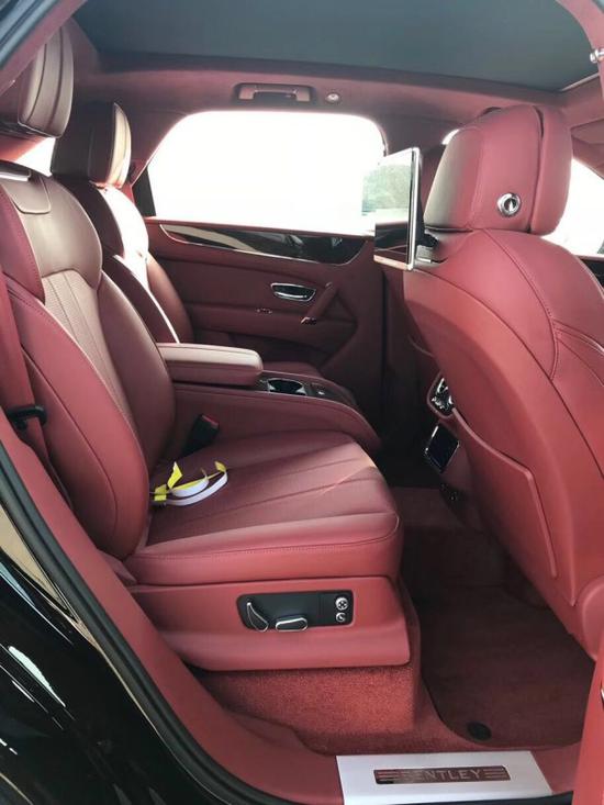 18款宾利汽油添越W12颜色:黑/红状态:1394宏泰库配置:电动天窗、4座、前座舒适头枕、前座22向调整记忆座椅、电动可调整三点式安全带、舒适包:前后座加热通风按摩座椅、后座18向电动调整座椅带中央扶手、后座舒适头枕、后娱、小桌板