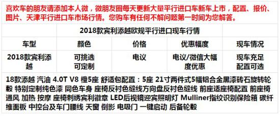 平行进口车开放以来,对传统4S店造成较大冲击。很多用户也很关心实际性能配置状况等。我们编辑们来到天津港保税区天保大道210号太平洋国际汽车城H-5-6-7-8天津金翔国际贸易有限公司为您实地体验了一次2018款宾利添越总体而言,相对传统渠道,平行进口车性价比突出,很值得考虑。价格品质都很有优势。