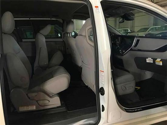 2018款塞纳加版四驱XLE,白/灰配置:7座,真皮座椅,8向电动主驾座椅调节带腰部支撑,4向副驾驶调节,前排座椅加热,电动天窗,真皮多功能方向盘,卤素大灯,日间行车灯,电动加热外后视镜,双侧电动滑动门,18寸10幅铝合金轮毂,胎压监测,防爆轮胎,3区空调,倒车影像,隐私玻璃,行李架,8寸触屏,6扬声器,8气囊,定速巡航,桃木内饰,电动后备箱+摇启,后驻车雷达,无钥匙进入,一键启动,金属漆,4.2寸电脑显示屏,前雾灯,并线辅助,前风挡双层隔音玻璃,防盗系统