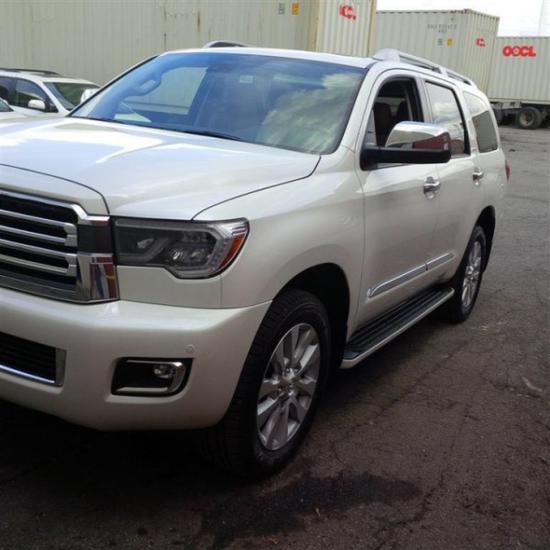2018款丰田红杉5700白金版 大量现车 本店购车最快当天办齐新车所有手续,(关单,商检,车辆信息表,同等性证书,保养手册,车辆使用说明书,国内维修保养通讯录,当天可开车回家) 2018款丰田红杉5700四驱白金版外观很简洁大气,非常的低调,没有狂妄的感觉,但是追求的是内涵。大面积的梯形进气格栅,巨大的保险杠,大轮眉,让红杉的车头力量感呼之欲出。是一款备受车迷青睐的超大型SUV,车身长为5.2米,宽2米,高1.9米,轴距3.1米,健硕的车身,粗犷的线条,宽敞的空间,强劲的动力,无一不彰显丰田家族SUV的魄力和风范。