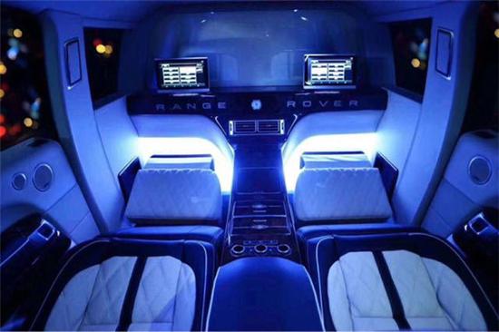 路虎揽胜皇家一号配备了BOSE5.1殿堂级影院系统,喝酒K歌绝对毫无压力。后排配备有鞋托,车内底板全部为豪华游艇木装饰。由于是4座的设计,所以说后备箱腾出了比较大的空间,说到底,路虎揽胜皇家一号,还是一个豪华商务越野车。
