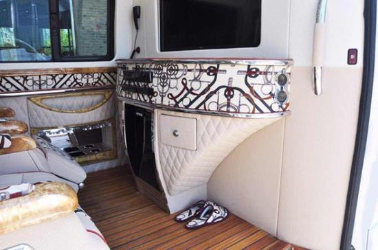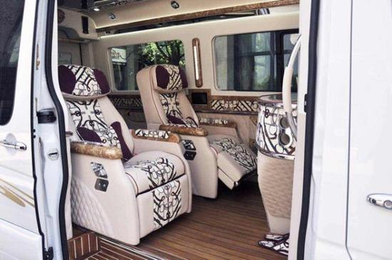 全车座椅真皮制作,细节处理入微至细,做工十分精良。根据人体工程学设计,配置电动按摩加热系统,以及电动调节方向功能。中排座椅可360度旋转,与后排座椅形成对座模式,中间地板上设置有卡扣,安装上总裁会议桌,便形成了商务模式。