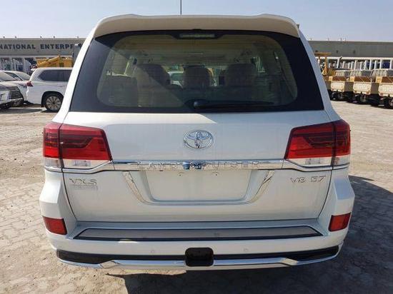 丰田酷路泽5700VXS,新车前脸整体凸显彪悍与霸气,锐利的前大灯与镀铬进气格栅紧紧相连,极有一副锐不可当的架势。镀鉻的前中网与后灯镀鉻装饰加上后镀鉻牌照架显得更具军人般的硬朗气质。