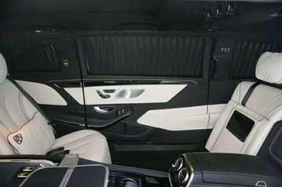 防弹奔驰S600加长版5.98米呈现出与前者截然不同的姿态,修长的线条尽显其端庄优雅。加长之后的车身和轴距带来宽适豪华的乘坐空间。在该全新车型的行李箱门处镶有Maybach的标识,彰显出该全新车型的不凡身份。