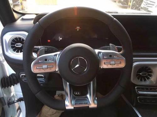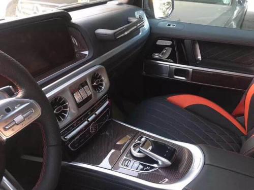 19款全新G63内饰方面,新G63保留了新G500的整体设计,除配色差异外,新车还换装了全新造型的平底式AMG运动方向盘,其两侧配以打孔皮质包裹,下部镀铬装饰的造型也与新G 500明显不同,看上去十分战斗。此外,全液晶仪表盘+中控大屏的双12.3英寸屏幕设计在新车上也没有缺席,营造出了浓郁的科技感。