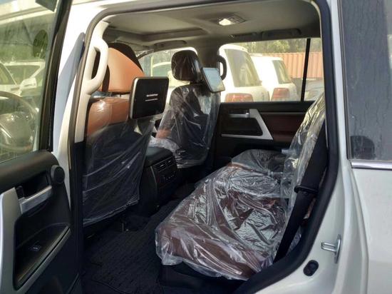 2018款酷路泽5700VXR顶配 白/棕 (7座手续)8座,雷测,底盘升降,12气囊,蠕行,遥启,天窗,LED氙灯,冰箱,桃木真皮多功能方向盘,20 轮,环车影像,真皮电动座椅,前排座椅通风,8速,电动后备箱门(油箱138L),10寸屏幕导航,JBL音响,10.1寸后座娱乐系统,全地形全时四驱,四区自动空调,一键启动,无线门锁,智能卡,中控锁,自动感应雨刷,大灯清洗装置,电动折叠后视镜,侧脚踏,前、后雾灯,自动远光灯,自适应性悬挂系统,防擦板照明,制动防抱死系统,刹车辅助,车辆稳定性控制系统(VSC), 盲点监测(BSD),倒车后视辅助(RCTA),预碰撞安全系统(PCS),车道偏离警报(LDA),上坡辅助(HAC), 胎压监测,扰流尾翼,顶轨,拖钩,全车镀铬,电尾门