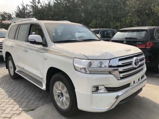 2018款丰田酷路泽5700 VX 限量版配置:限量纯白前中网,限量棱形米格Nappa真皮座椅,前后新款大包围,360度环车影像,车身悬挂系统,倒车影像,尾部限量标,18寸轮毅,蠕行模式,天窗,远程遥启,LED氙灯,冰箱,8速,超大油箱138L,9寸大屏导航,全地形全时四驱,四区自动空调,桃木内饰,多功能方向盘,一键启动,无线门锁,智能卡,中控锁,自动感应雨刷,大灯清洗装置,防炫目内后视镜, 侧脚踏,前、后雾灯,地板照明系统,车辆稳定性控制系统(VSC), 转弯辅助功能,泊车辅助,上坡辅助(HAC), 胎压监测,巡航定速,后尾翼,限量行李架,拖钩。
