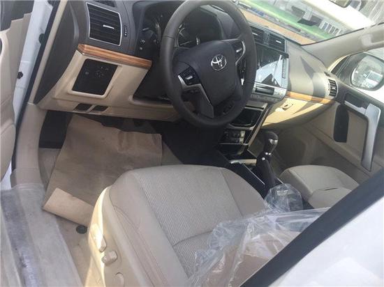 18款霸道4000丐版 配置:18款霸道4000TXL丐版无窗,珍珠白米(金属漆),配置:两气囊,智能卡、一键启动、PRADO字母贴,脱钩、18铝轮、黑踏、多功能方向盘、胎压检测、冰箱、大屏、三区空调、电动折叠后视镜