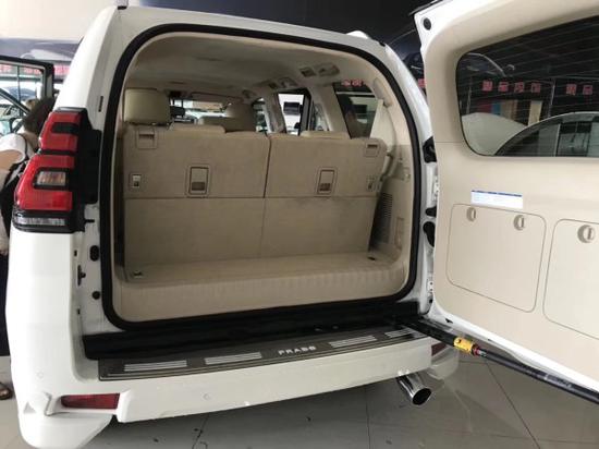 详细配置:18款丰田霸道2700 TX 铁轮 外挂 大油箱 丐版 2气囊、6速、全时四驱、R17铁轮毂、150升大油箱、小屏、原厂7座丝绒座椅、司机座椅电动腰部支撑、卤素大灯、手动头灯、后雾灯、黑色外后视镜/格栅/门把手、6喇叭、ABS+EBD、车身稳定系统、胎压监测