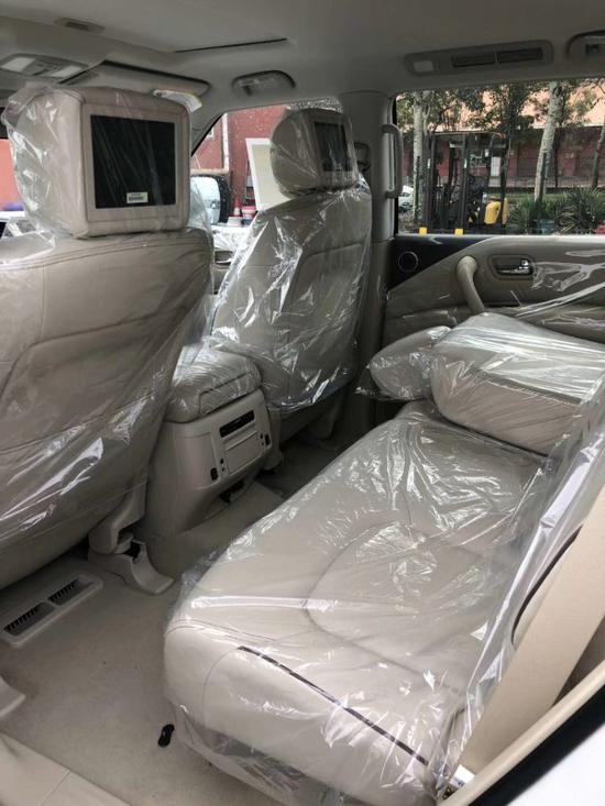 详细配置:2019款尼桑途乐4.0L XE 配置:2气囊,7座,底挂,18铝轮, 冰箱,卤素大灯,LED尾灯,后雾灯,电动车窗,智能卡,一键启动,电动折叠后视镜(黑色),智能四驱系统LSE+后差速锁,上坡辅助,定速巡航,菱格纹丝绒座椅,双区自动空调,顶棚出风口,胎压监测,前后开启式中央扶手箱,多功能方向盘,前四后四电眼,手机无线充电 43.8万