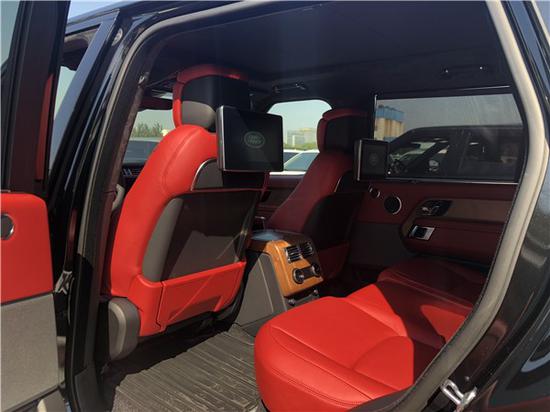 18款路虎创世加长5.0,中控台高档木料搭配,卫星导航系统,上下两块DVD超大显示屏;方向盘上分布着快捷按键,与老款相比方向盘上的按键也改成了触控的形式、使驾驶者更舒适的操控,充斥着满满的科技感、路虎揽胜行政中控台更宽;更精致,按键少了一半,大多数基本控制功能近在咫尺。由精美真皮和甄选实木装饰的表面干净优雅,散发出安详平静的感觉。新款路虎揽胜行政内饰一如既往的精致内敛,如同绅士。