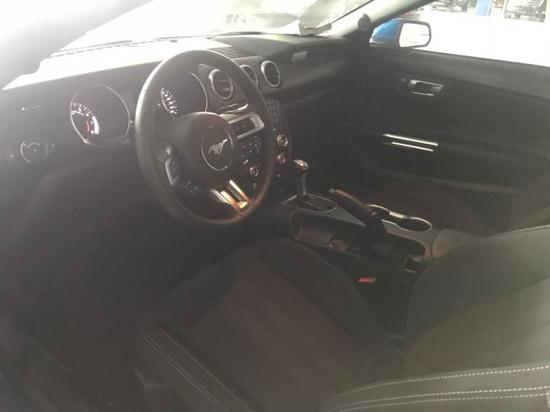18款加版 野马2.3T标配 电光蓝/黑配置:2.3T 10速变速箱,17寸轮毂、独立后悬挂,盲点外后视镜、氙气大灯、仪表台带镀铬、真皮驻车制动手柄、真皮方向盘、后座椅可折叠、6项手动驾驶位座椅、AM/FM单碟CD带6个扬声器、后扰流板、LED雾灯、福特SYNC车载娱乐系统、一键式启动按钮、智能钥匙、倒影。