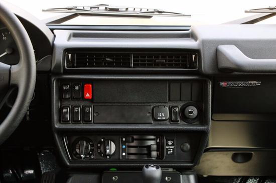 在中控部分,G300各区域功能清晰,大多数功能采用按键与旋钮控制。值得肯定的是,G300配备了CD播放器,使远行更增添一番乐趣。在CD播放机的下部,改装奔驰G300预留了一块地方,方便日后加装其他设备。比较有意思的是,G300的空调采用了旋钮+三组拨杆的设计,还特别贴心的展示了前风挡解冻的功能。改装奔驰G300配备了手动防眩目内后视镜,尽可能多的保持机械风格才是所需要的。除此之外,G300还提供了前排座椅加热,增添更多舒适性。