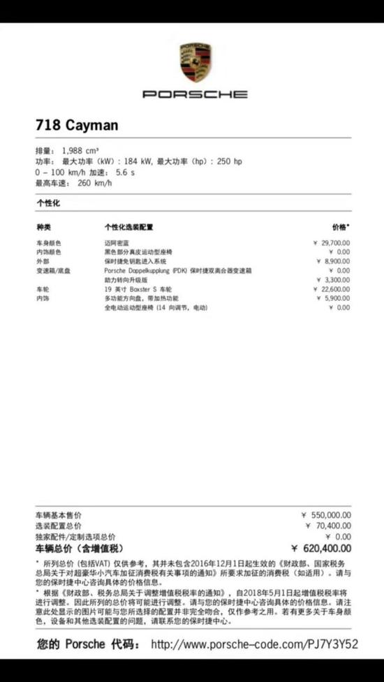 718是保时捷旗下豪华跑车,凭借出色的外观设计以及良好的动力性能,使众多消费者为之向往。网通社从保时捷官方获悉,保时捷新款718上市,同时该车系还新增两款性能版车型Cayman GTS和Boxster GTS,售价区间为59.3-97.8万元 。外观方面,新车前脸造型极具冲击力,同时车头两侧前大灯配有动态照明系统,科技感十足。动力方面,新款718将提供2.0T和2.5T发动机。