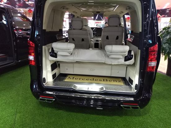 整车座椅采用进口Nappa真皮包裹,电动调节总能让您找到舒适的坐姿,大尺寸触摸屏,配有倒影、后雷达;更有大容量冰箱,安全性,便利性都有保障; 2+2+3座椅排列,也是当前商务车最为流行的设计,二排独立航空座椅,打孔真皮处理更透气,座椅通风、按摩给予您更舒适的乘坐感受,更有360度旋转功能; 无论是照顾孩子、陪家人聊天,亦或是商务洽谈,都能让您随心所欲;此外第三排座椅展开,即可形成一张宽大舒适的沙发床