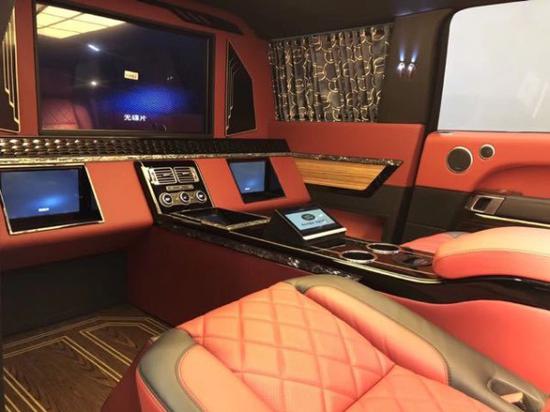 长:5.98m,宽1.98m,高2m,3.0T V6大功率发动机蓝黑双色车身/干椒红内饰,22寸多幅轮毂前排座椅14向调节带记忆,前排座椅通风加热,后排电动座椅,后排通风加热按摩(带腿托),皮顶,前雾灯,桃木方向盘,方向盘加热,无钥匙进入,一键启动,脚感尾门,360度环车影像,二代地形,空气悬挂,电吸门。可升降蓝光DVD播放系统,三屏显示,英国之宝825W顶级环绕音响系统,车内氛围灯,后排LED吸顶照明灯,后排独立空调控制系统,电动脚踏板,爱马仕订制窗帘,后排隐藏式密码保险箱,无线充电。