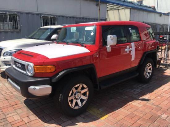 18款酷路泽FJ 配置:顶配丰田酷路泽FJ 4.0L 5AT 17轮,前雾灯,银色把手,镀银外后视镜带转向灯,镀铬后尾灯罩,后雷达(双探头),镀铬尾喉,黑色挡泥板,脚踏,双油箱,防炫目内后视镜,指南针水平仪,数码时钟,双色多功能方向盘,蓝牙电话,定速巡航,上坡辅助,防侧滑,遥控钥匙,,手动空调,织布座椅,倒影,胶皮脚垫,灰色顶棚,(JBL音响,8气囊,蠕行,胎压监测)
