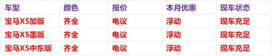 近日获悉,天津港运泽汽车贸易有限公司新到宝马X5,加版,墨版,中东版,柴油,汽油现车充足。本公司常年对外批发,零售宝马全系车型,购车方面支持全国分期付款,全国四大行都可办理,本公司车辆可全国上牌,手续全部随车,部分地区可提供上牌服务。本月现车优惠促销,感兴趣的朋友不妨进一步观察!