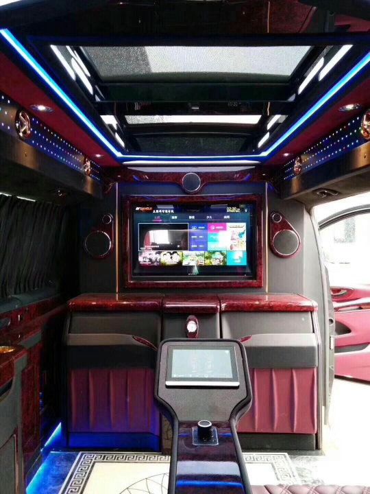 18款纯进口威霆改装车促销报价60万 现拨打电话立即优惠1万起威霆行政限量版,高顶,桃木加粗方向盘,更有手感,主,副驾驶电动调节,大屏触控屏,豪华车载冰箱,黑白檀木可升降隔断,40寸曲屏电视,中排航空座椅,加热 通风 按摩 旋转功能,采用意大利进口牛皮包覆,古德曼线缝纫,后排座椅可放平。隐藏式指纹保险箱,空气净化器,超级游艇主卧皮地板,车包围采用真皮 桃木 金属条搭配,一键式咖啡机,行李箱实木抽屉,简约亚克力避灯,后舱USB接口,不锈钢衣架。