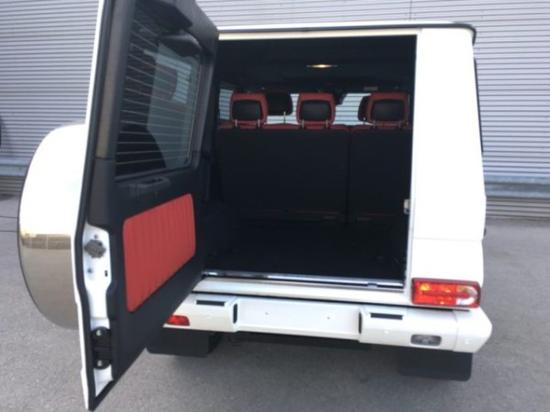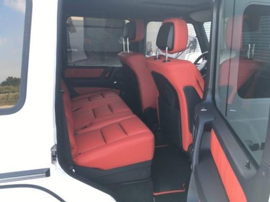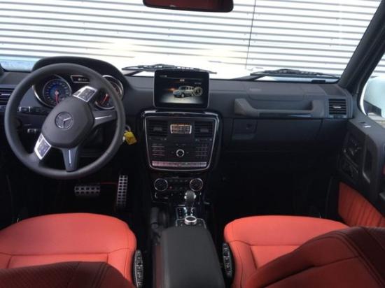 18款奔驰G350配置:白/红镀铬脚踏,不锈钢备胎罩环,19寸AMG5幅轮毂,镀铬扬声器外环,镀铬前进气格栅三条横线,泊车雷达,倒车影像,真皮仪表板,照明踏板,翻毛皮顶,前排座椅通风,带腰部支撑,designo经典红色单色真皮坐椅,丝绒脚垫,滑动天窗,方向盘加热,哈曼卡顿音响,后排隐私玻璃。