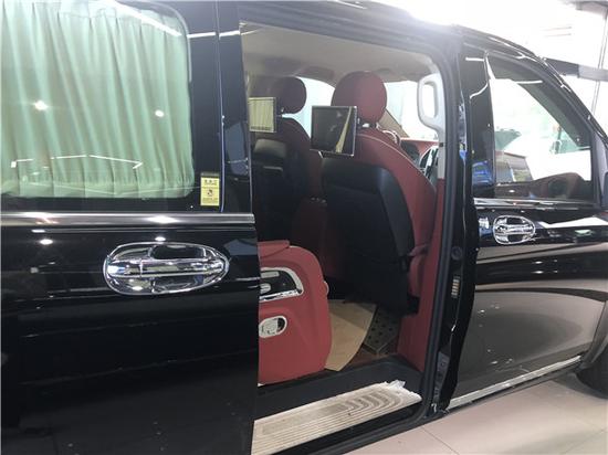 两个后排座采用进口迈巴赫s600座椅,自带按摩,通风加热,气柱按摩,座椅采用进口小牛皮加纳帕真皮纺织,左侧配有多媒体中控屏,后排主座上配有平板电脑方便办公,中间位置车内功能调节主控屏幕,加开关控制,方便快捷,中间手扶出配有储物格,后排有220v充电器,方便车内乘客使用,右侧配有一个可容纳三十万现金的保险箱,使用指纹,钥匙双保险前排电视升降,语音识别。