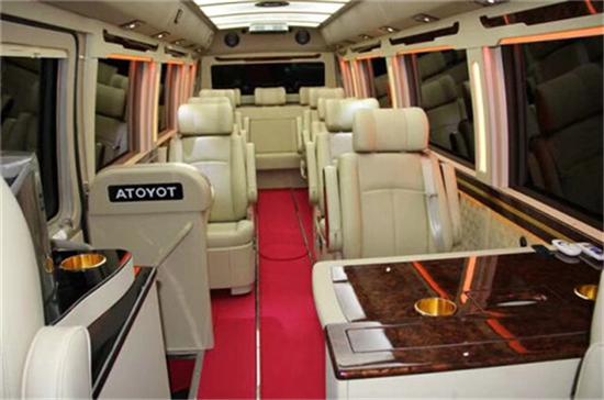 考斯特整体造形美观,内部改装布局充分考虑与丰田考斯特整车的平衡,每位乘客能切身体会尊贵。整体布局大气、和谐、实用。丰田考斯特10-23座改装商务车,采用4.0排量的V6发动机,强大的设置为我们的行车提供源源不断的动力。刚说过初见是的心动,丰田考斯特7-23座改装商务车在外观上大气端庄,米黄金属色的外衣高贵而耀眼,瞬间提升高贵的感觉。再加上改装的精心点缀,丰田考斯特中间的彩色腰线更是让丰田考斯特15座改装商务车在商务车的市场上突出独特的灵动之感。