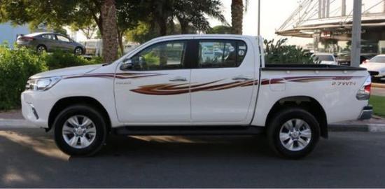 目前市场在售三种配置:18款丰田海拉克斯皮卡2.7GL汽油版、6速手自一体、二/四驱分动、三气囊、多功能方向盘、行车电脑、17铁轮、彩条、镀铬后视镜、镀铬中网、手动空调、高级织物红色座椅、四门手窗、数字时钟。
