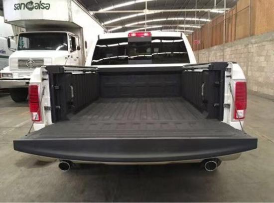 道奇公羊长角号皮卡采用了双排气,这样大的发动机采用双排气的是很少见的。 5.7L自然吸气引擎,其最大马力达到395马力,峰值扭矩为554Nm,采用了四幅式多功能真皮方向盘,功能键可以控制音频系统。仪表盘样式采用了比较传统的圆形指针式设计,但是其中可显示的信息量却大的惊人,传动系统方面,新车将全系8速自动变速箱,这将对该车的燃油经济性和平顺性有较大的帮助