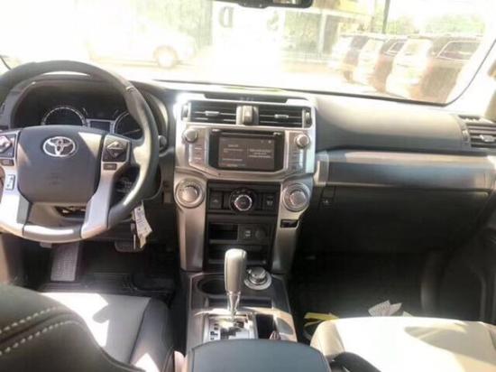 内饰上采用四副式方向盘,液晶仪表盘,中控台显示屏看上去配置不是很好,唯一的优点就是内部空间大,可以用来当小型客车了。方向盘采用的是与普拉多非常相似的设计。也是双边采用银色装饰条并且带有多功能按键,着中造型设计应该是丰田家族式设计,整体感觉还是非常的厚重感。