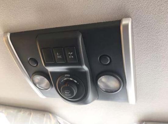 18款丰田FJ酷路泽的内饰配备了各种现代而先进的硬件和功能,而且使用方便、灵活,自动防眩目内后视镜、大灯自动关闭功能、方向盘多功能控制键、巡航定速、倒车雷达等配置给驾乘者带来更高的舒适性。中控台简洁干练,方正平直的造型与现在主流的设计大不一样。接近垂直的布局很难让人有把玩的兴趣,这样布局的主要原因仅仅在于满足正常使用即可;同时又能从内而外散发出一种不同任何丰田越野车的感觉;或者说是从骨子里就向祖先致敬。