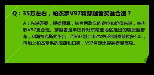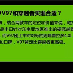 在价值上,国内销售的穿越者基本都是入门版,虽然售价比帕杰罗低了5万元左右,但配置也相当低,同时,穿越者的驱动形式分分时四驱,没有V97的超选二代四驱系统(兼容分时和全时四驱)全面,5万元差价也不足以补齐穿越者在软硬件方面的差距。