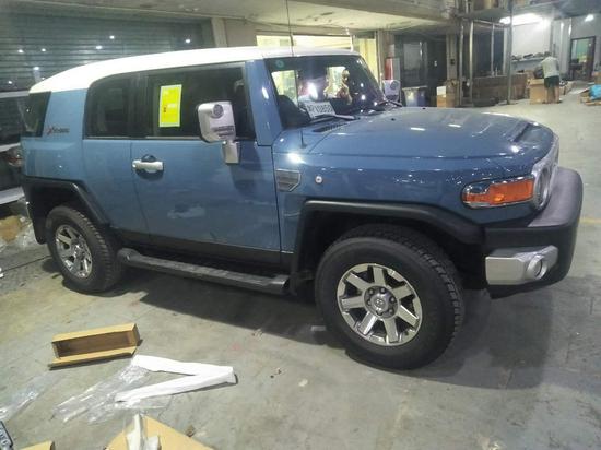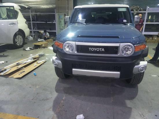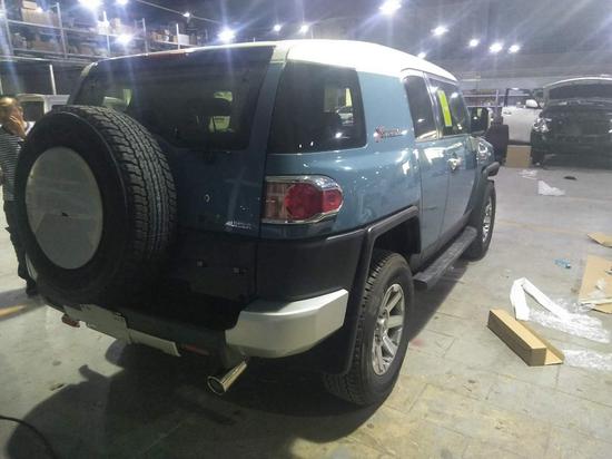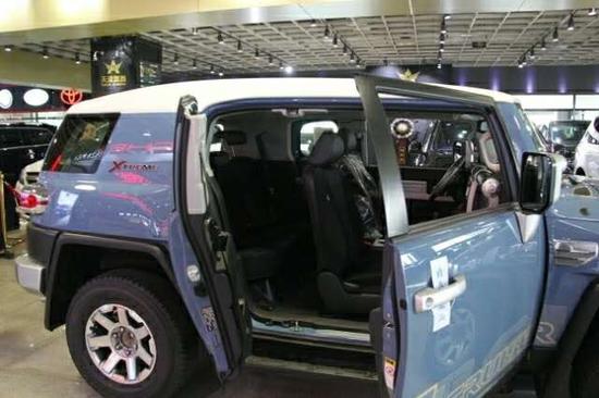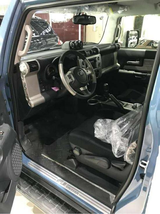 配置;顶配丰田FJ 4.0L 5AT 17轮,前雾灯,银色把手,镀银外后视镜带转向灯,镀铬后尾灯罩,后雷达(双探头),镀铬尾喉,黑色挡泥板,脚踏,双油箱,防炫目内后视镜,指南针水平仪,数码时钟,双色多功能方向盘,蓝牙电话,定速巡航,上坡辅助,防侧滑,遥控钥匙,,手动空调,织布座椅,倒影,胶皮脚垫,灰色顶棚,(JBL音响,8气囊,蠕行,胎压监测)