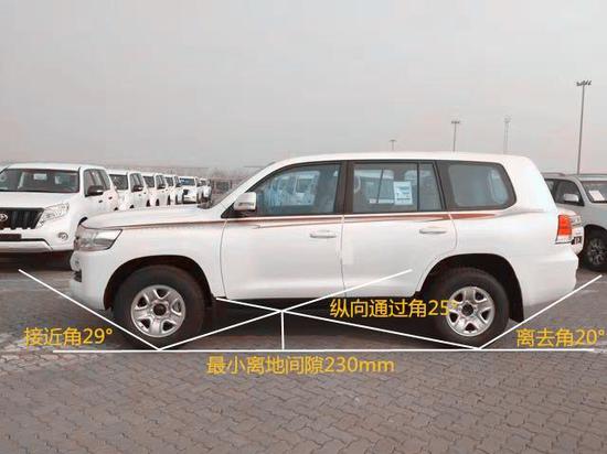 2018款丰田兰德酷路泽4000出众的车身加上优良的数据,接近角29°,纵向通过角25°,离去角20°最小离地间隙230mm,再加上其较长的悬挂行程,可通过其它车型望而却步的恶劣路况。通过不断适用的过程,被国内车主逐渐定义为越野之最,可应付各种不同路况,无陆巡、不越野。丰田酷路泽4000乞丐版全新的前组合大灯微微向两边翘起,配合宽大的金属格栅和不同色的前保险杠,王者傲视一般霸气。大嘴样式的设计只有在丰田的豪华SUV中才能见到。